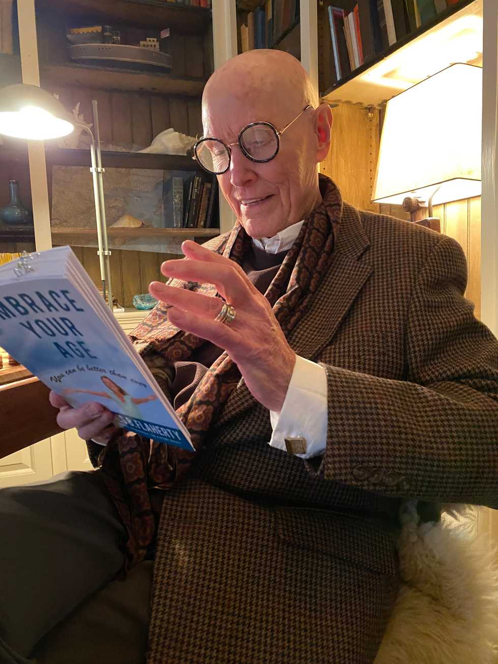 A profound believer in the joys of senior life and its attendant rewards, Jim Flaherty returned to Troutbeck in Amenia, the scene of one of his life’s greatest projects, to read from his newly published book, “Embrace Your Age: You can be better than ever.”