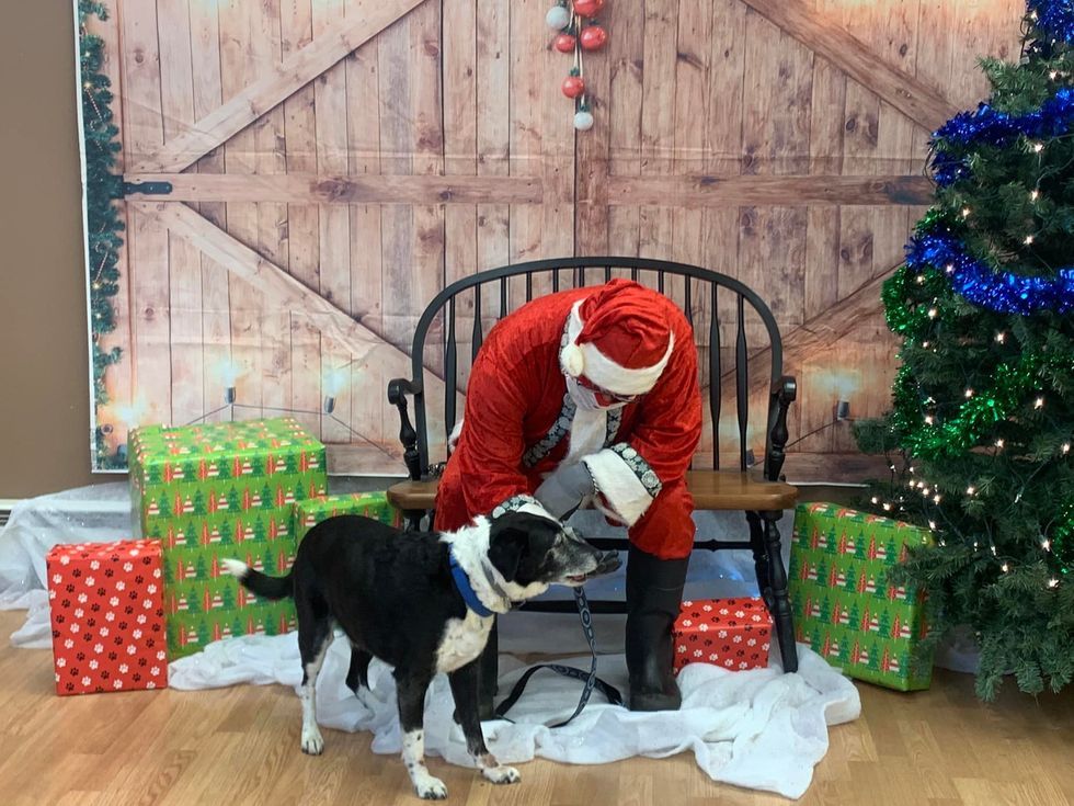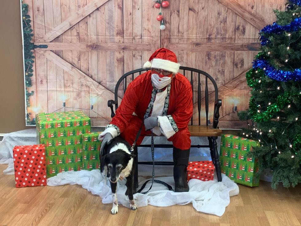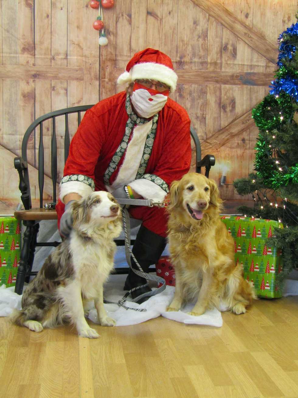 A dynamic doggie duo, Kali the Australian Shepherd and Zoey the Golden Retriever rested by Old St. Nick’s boots to take a festive holiday moment at the Top Dogs 4-H Club’s Pet Photos with Santa event.