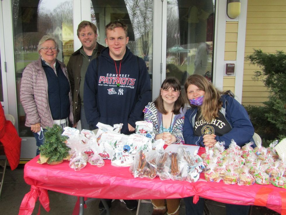 From left, Maplebrook School faculty members Rolinda Luther and Michael Schnurr and students Thomas Schiavone Jr., Rebecca Rowland and Anna Sudderth sold a variety of delicious treats at the Winter Fest bake sale. Photo by Kaitlin Lyle