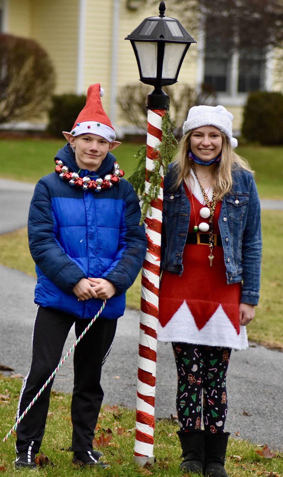 Dressed for the holidays from head to toe, a pair of students welcomed visitors to Maplebrook School’s Winter Fest. Photo by Jennifer Scully
