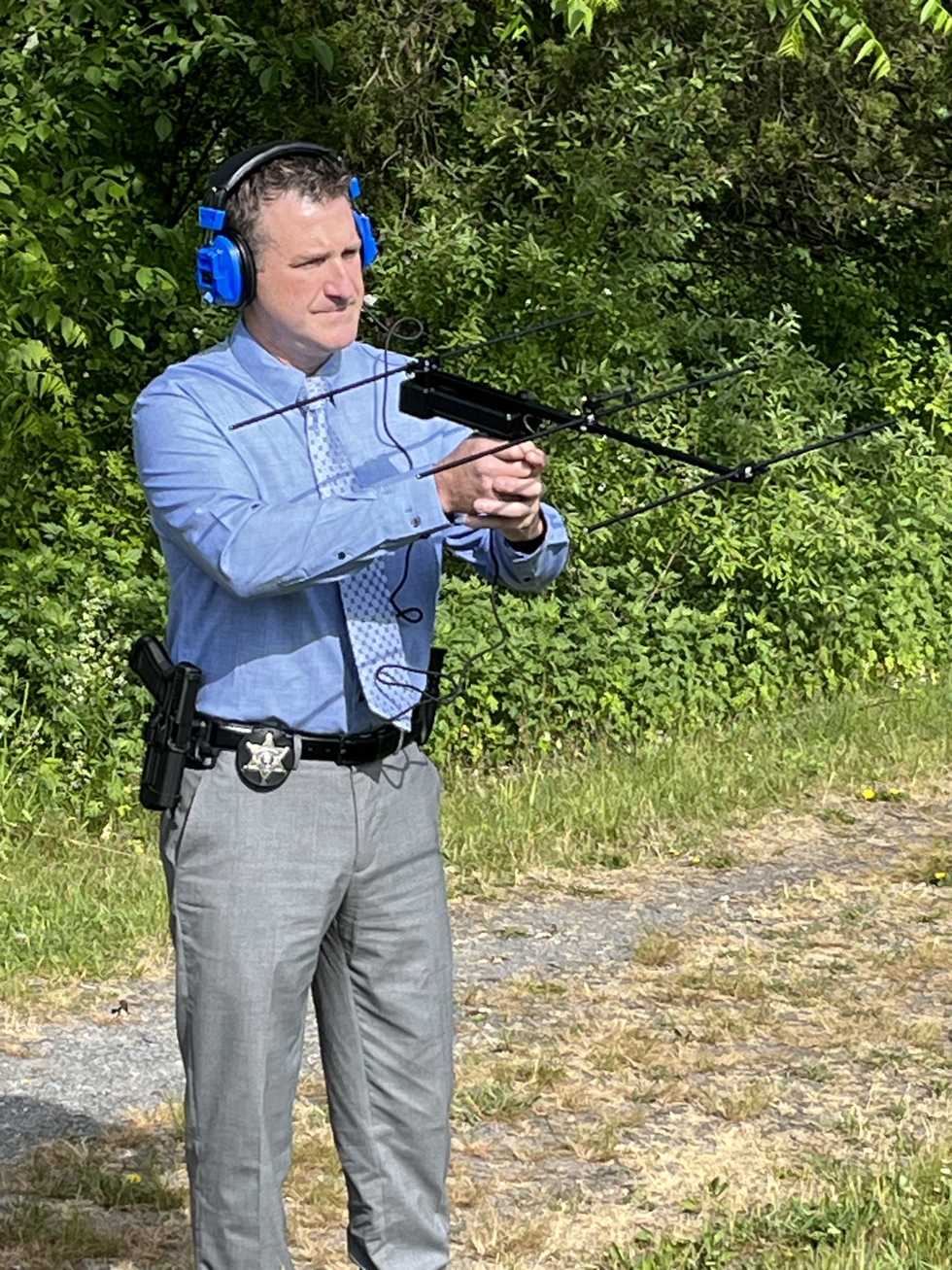 Dutchess County Sheriff Deputy Russell Seymour, coordinator of Project Lifesaver, demonstrates part of the transmitter system that helps locate vulnerable individuals who have gone missing. Photo submitted