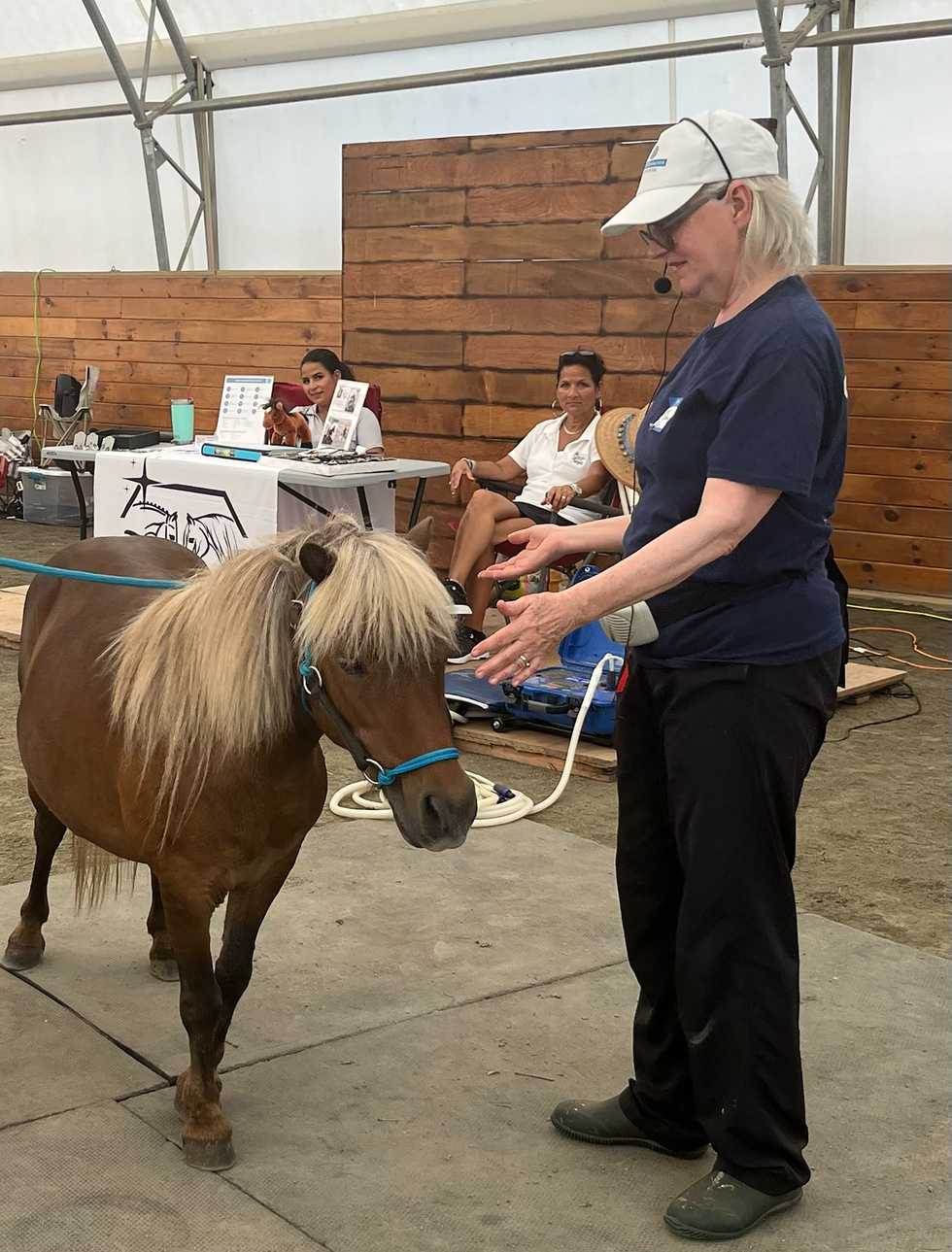Julianne Dow shows off her healing practice on miniature horse Carmella at Lucky Orphans Horse Rescue’s second annual Hug a Horse Day on Saturday, July 15.