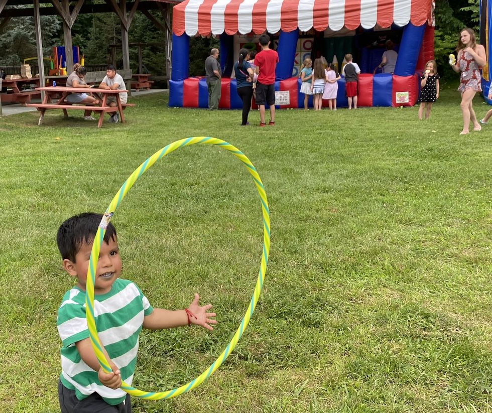A favorite with area youngsters, the Bubble Bus was dispensing bubbles of all sizes from sudsy to huge, to the delight of all. The bubbly fun was a feature of the Amenia Library Carnival at Indian Rock Schoolhouse on Saturday, July 19.