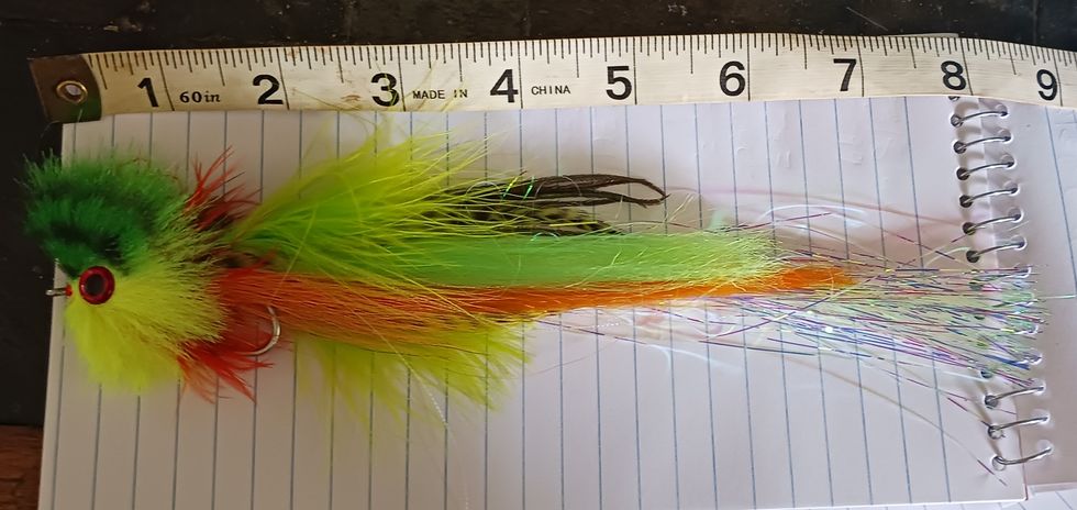 Tangled Lines World Headquarters now shifts to warm water lake fishing for August. I recently splurged on some really big flies, meant for pike or muskie but certainly applicable to largemouth bass etc.