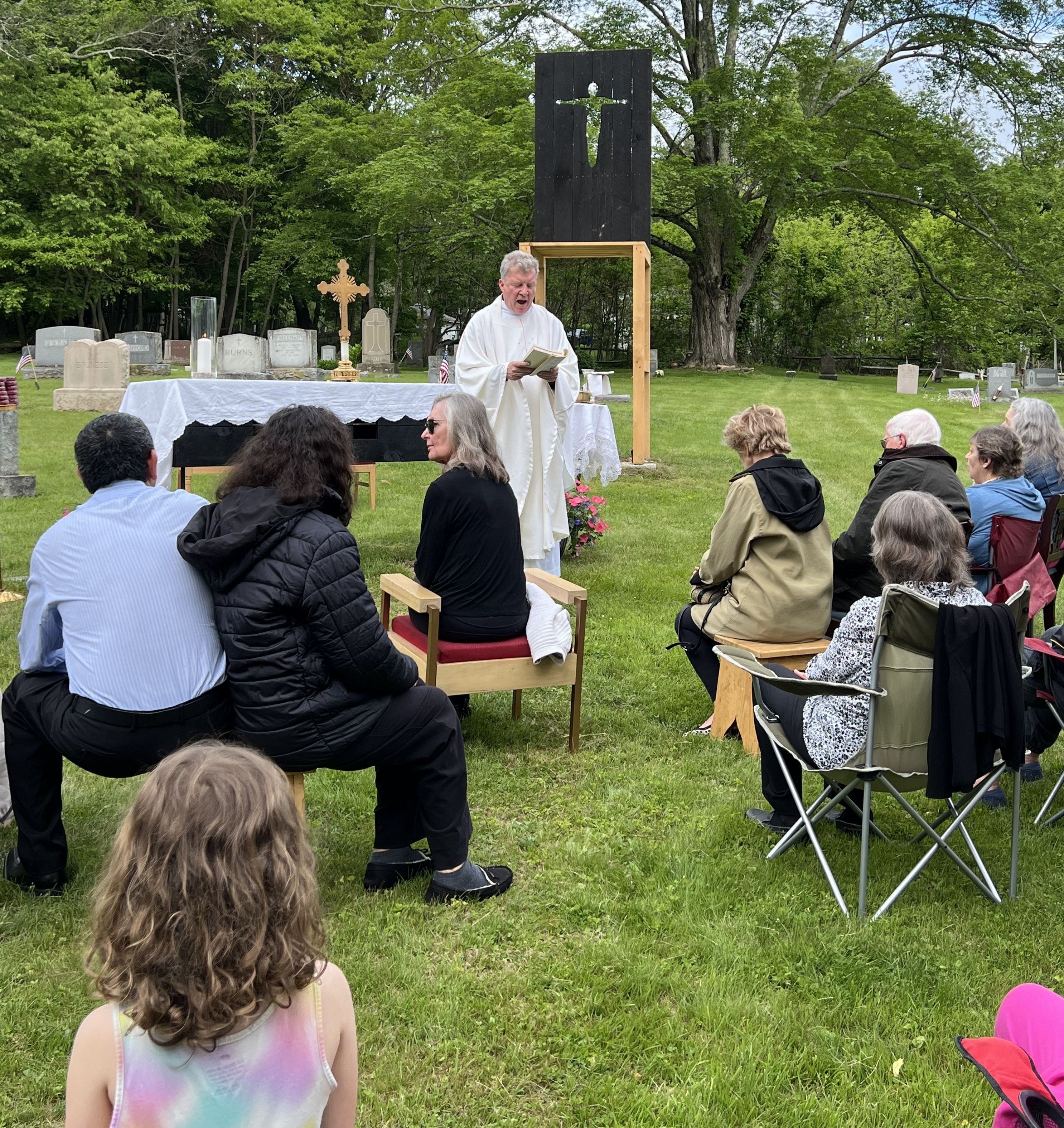 MILLERTON — The sun broke through on a cloudy evening at 5:30 and a bagpiper played for a Mass celebrating the Feast of the Ascension in the graveyard of closed St. Patrick’s Church in Millerton on May 29.