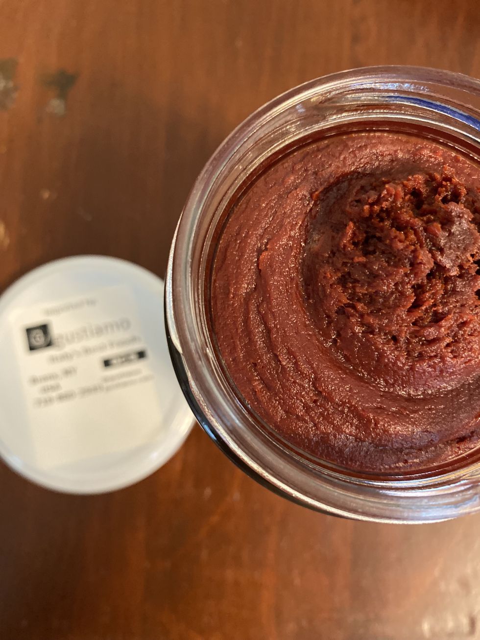Lorenzo Piccione, in the photo, next to his glorious tomato paste, available in North Canaan at Tenuta. Photo by Cynthia Hochswender