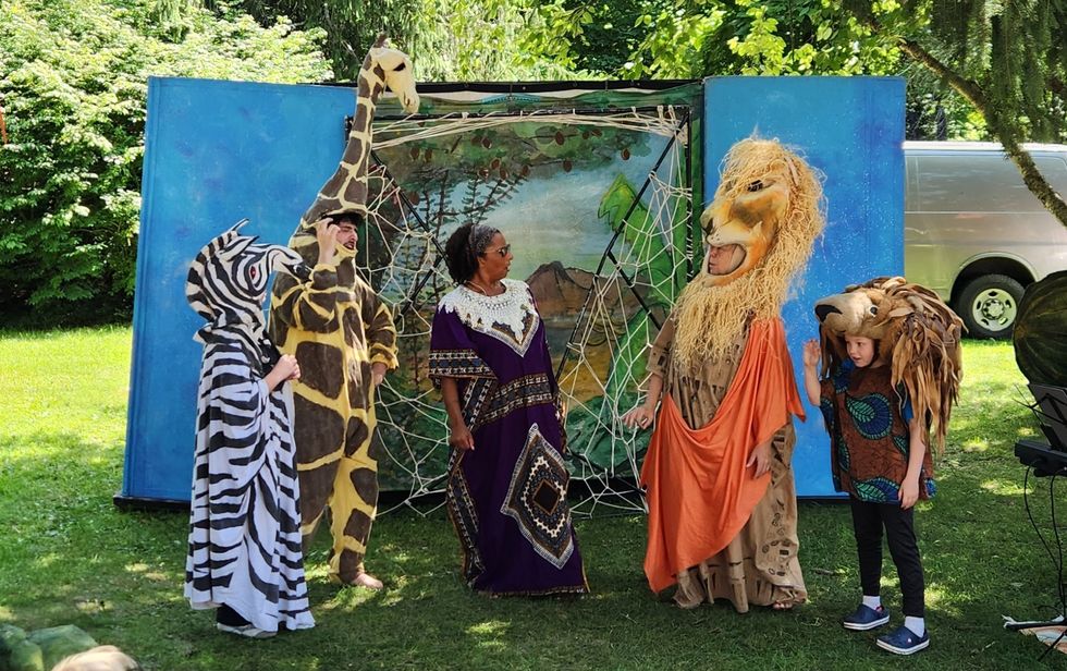 Up first, the Grumbling Gryphons Traveling Children’s Theater performed a colorful adaptation of West African folktale Anansi, the Trickster Spider at the Wish House in West Cornwall.