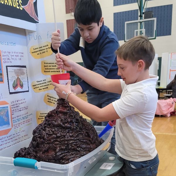 Several round tables held two exhibits, and while there were two or three scenarios involving volcanoes, the projects were varied and creative.