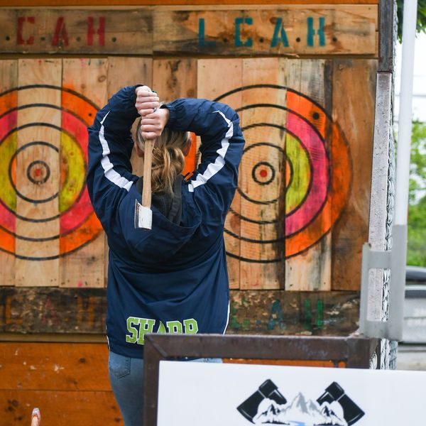 Litchfield County Axe House set up an axe-throwing booth just beside the rodeo ring. Owner Joseph Kucia said his company has been attending the Stampede for the past five years.