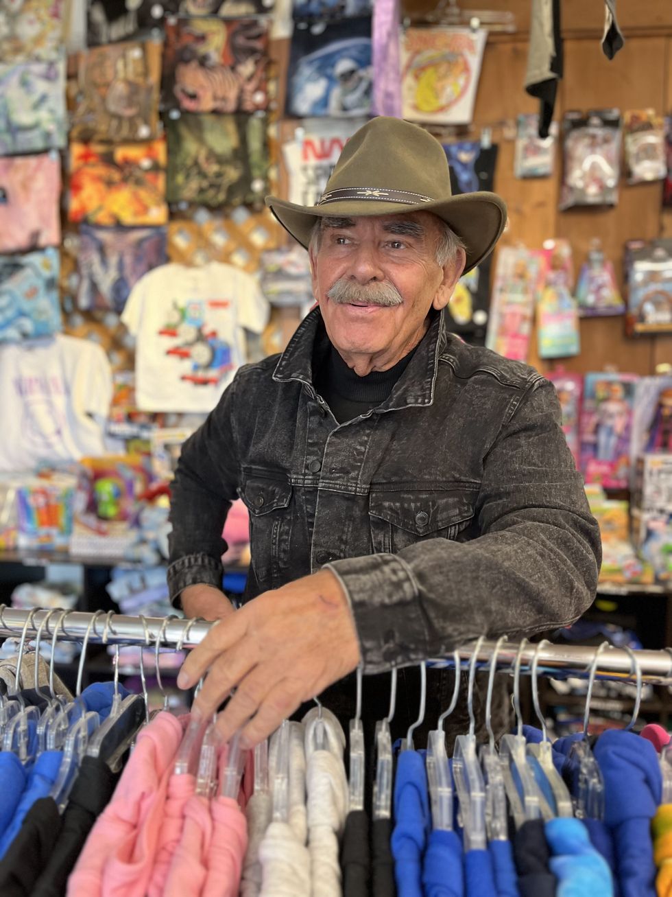 Gillian Osnato, wearing her father, Sal Osnato's, signature cowboy hat. Gillian took over her father's business, the T-Shirt Farm, after his passing in April.