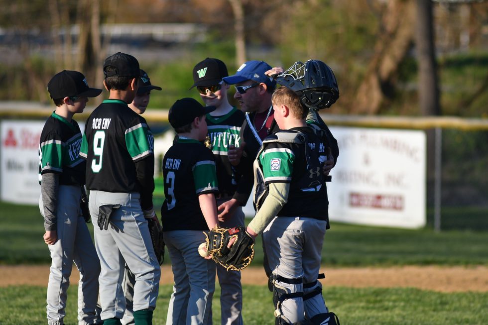 The Webutuck ACA Environmental Majors played the Red Hook VFW on Wednesday, April 24 at Father Carroll Field in Red Hook. Eli Milano, No. 3, leads the post-game handshake line. Webutuck lost 9-2 after six innings.