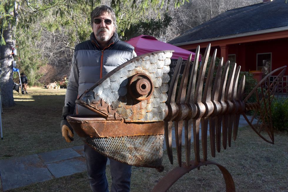 Michele Paladino, left, of “Lindera” had a display of wreaths and decorative arrangements. She gathers seeds from native plants and grows them to make her creations. On the right, Helena Barnes of Sharon Valley Honey had three kinds of honey: raw, whipped, and honey butter on sale. The honey comes from bees from her own hives in Sharon. They were at the West Cornwall Holiday Market on Nov. 30.