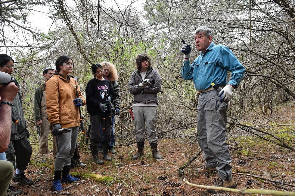 Hotchkiss students team with Sharon Land Trust on conifer grove restoration