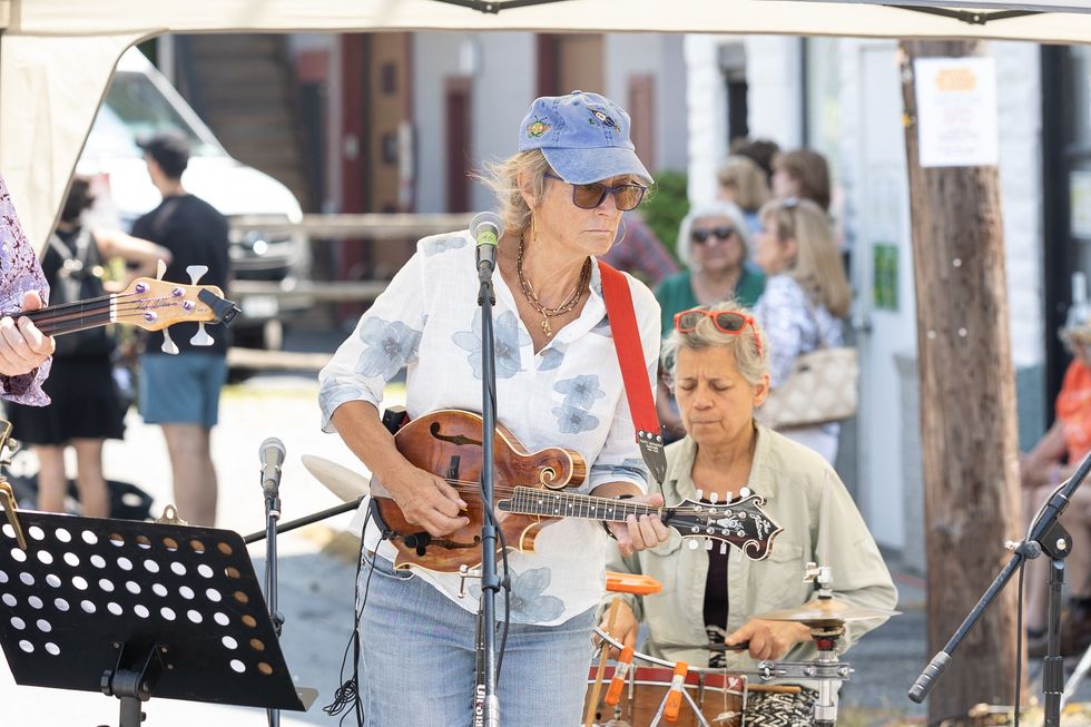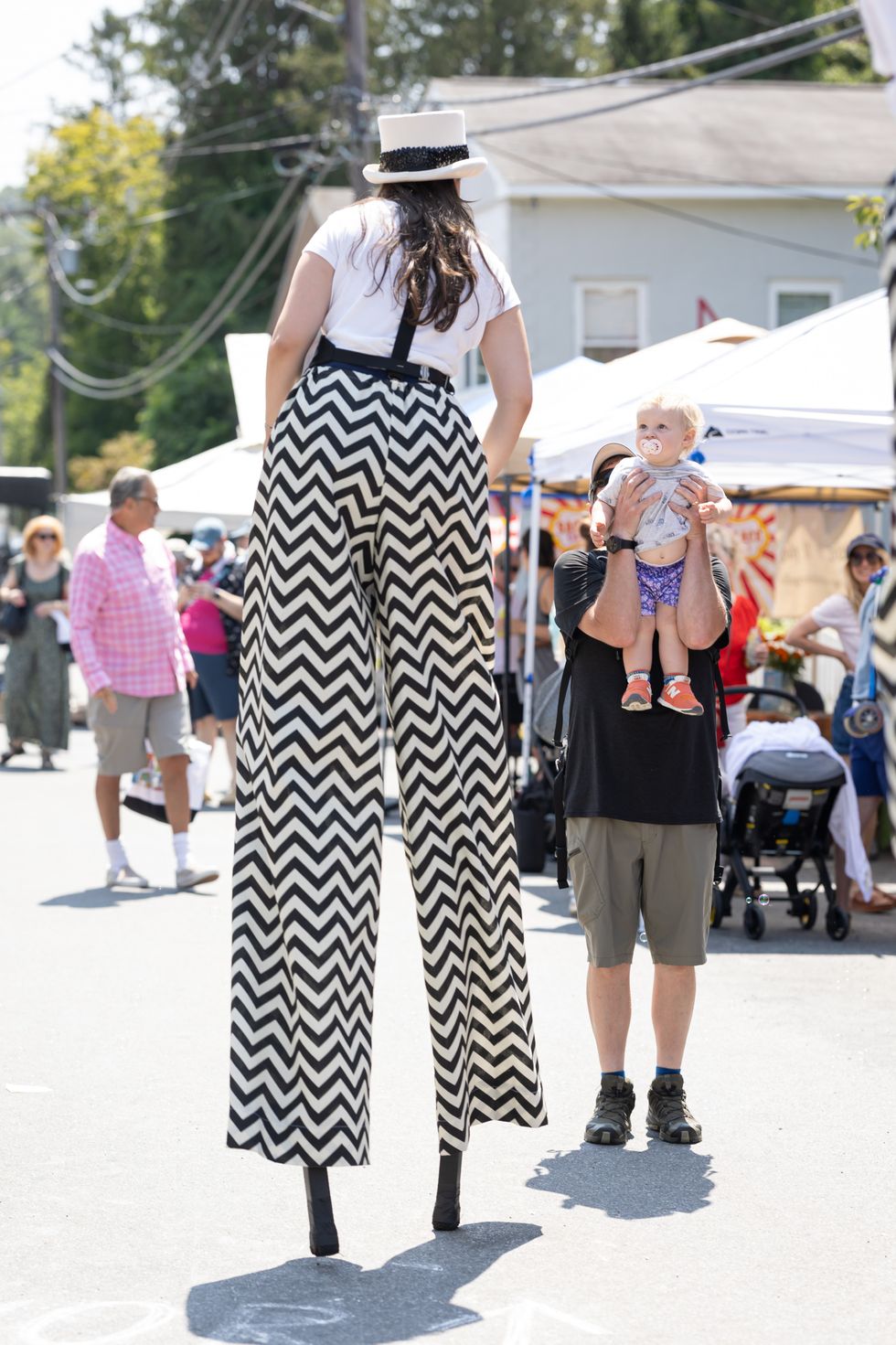 Tents lined the street offering free popcorn and Harney & Sons lemonade, sidewalk chalk for leaving colorful messages along South Center Street, henna tattoos, face painting and a raffle with book-filled bags sorted by genre. Food trucks, including The Flavor Bandits and Hudson Valley Falafel, kept attendees well-fed. Entertainment included live music by Josh Driver, who kicked off the party with an energetic solo set, and The Joint Chiefs, whose tunes inspired a few dancers in the crowd. Two stilt walkers from Mortal Beasts and Deities towered above the party, spreading cheer, high-fiving passersby, and posing for photos. Meanwhile, Millerton’s 175th anniversary committee hosted children’s games at the NECC playground.