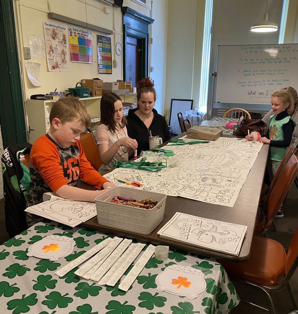 Lucky the Leprechaun set the pace at the Amenia Recreation Department’s observance of St. Patrick’s Day, complete with flute and a supply of hidden gold coins and other fun features for kids at the Town Hall on Saturday, March 15. A popular feature was the kids’ crafting table offering activities appropriately themed toward the Emerald Isle. Green was a popular color.