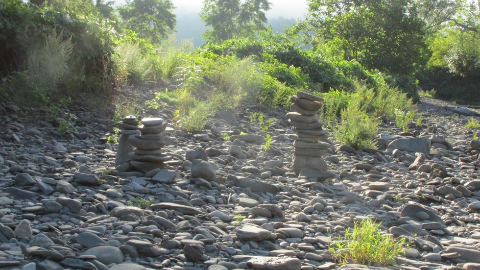 I went up to the Schoharie, behind the ballfield in Prattsville, where I beheld Trouthenge, where someone had stacked big rocks three or four feet up in the air. I am pretty sure this activity has something to do with legal marijuana.