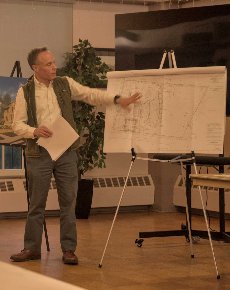 Architect Michael Sloan of Millbrook-based firm Sloan architects describes plans for the proposed Thorne Building renovation to the public for the first time at a public hearing of the Millbrook village Planning Board on Monday, March 16, at the Millbrook Firehouse on Front Street.