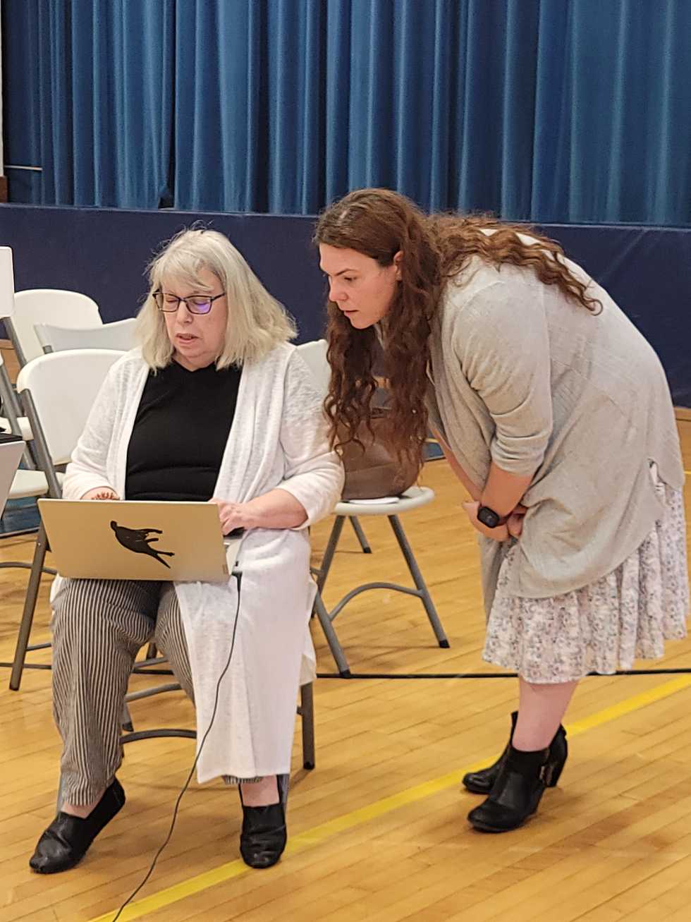 Dyan Wapnik, left, president of the Little Nine Partners Historical Society, readies the Saturday, June 10, presentation of the legacy of educator Seymour Smith with Alexis Tackett, director of the Pine Plains Free Library, in the gym of the Seymour Smith Intermediate Learning Center on Academy Street in Pine Plains.