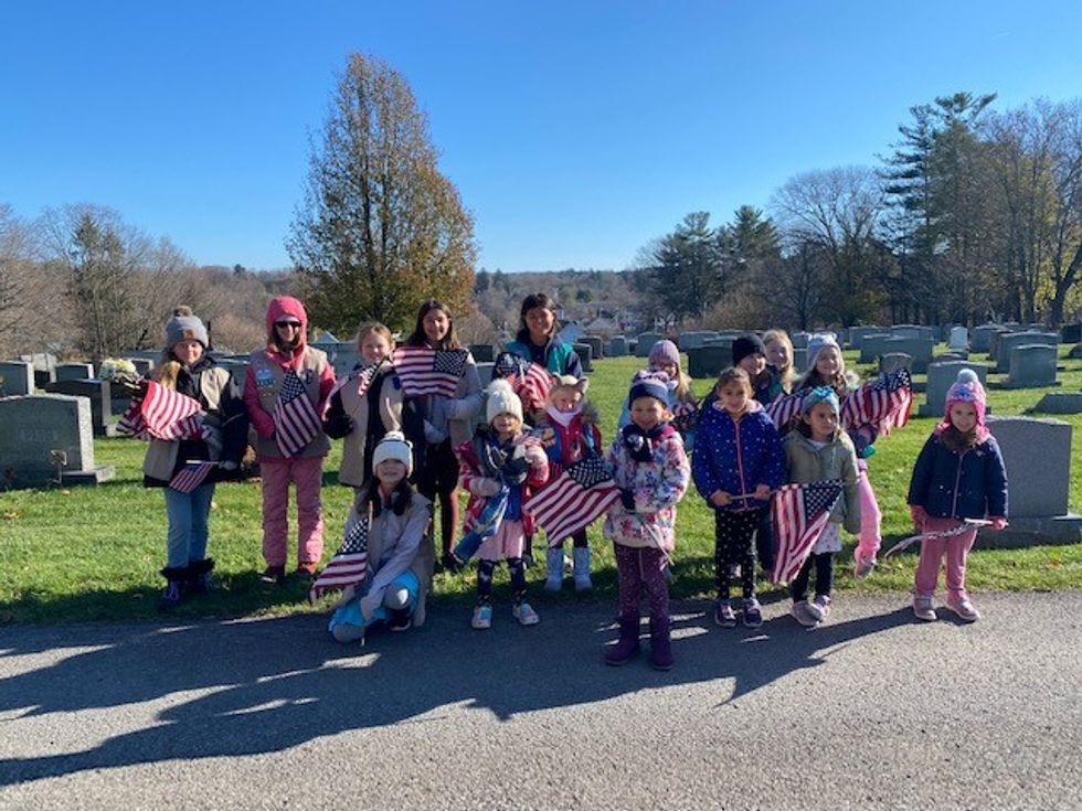 Sue DeMan,  a veteran,  also removed flags. The girls were there with leaders from the GS Millbrook Service Unit - Dawn Tompkins, Linda Obrizok, Chris LaBelle and Michelle Freer.