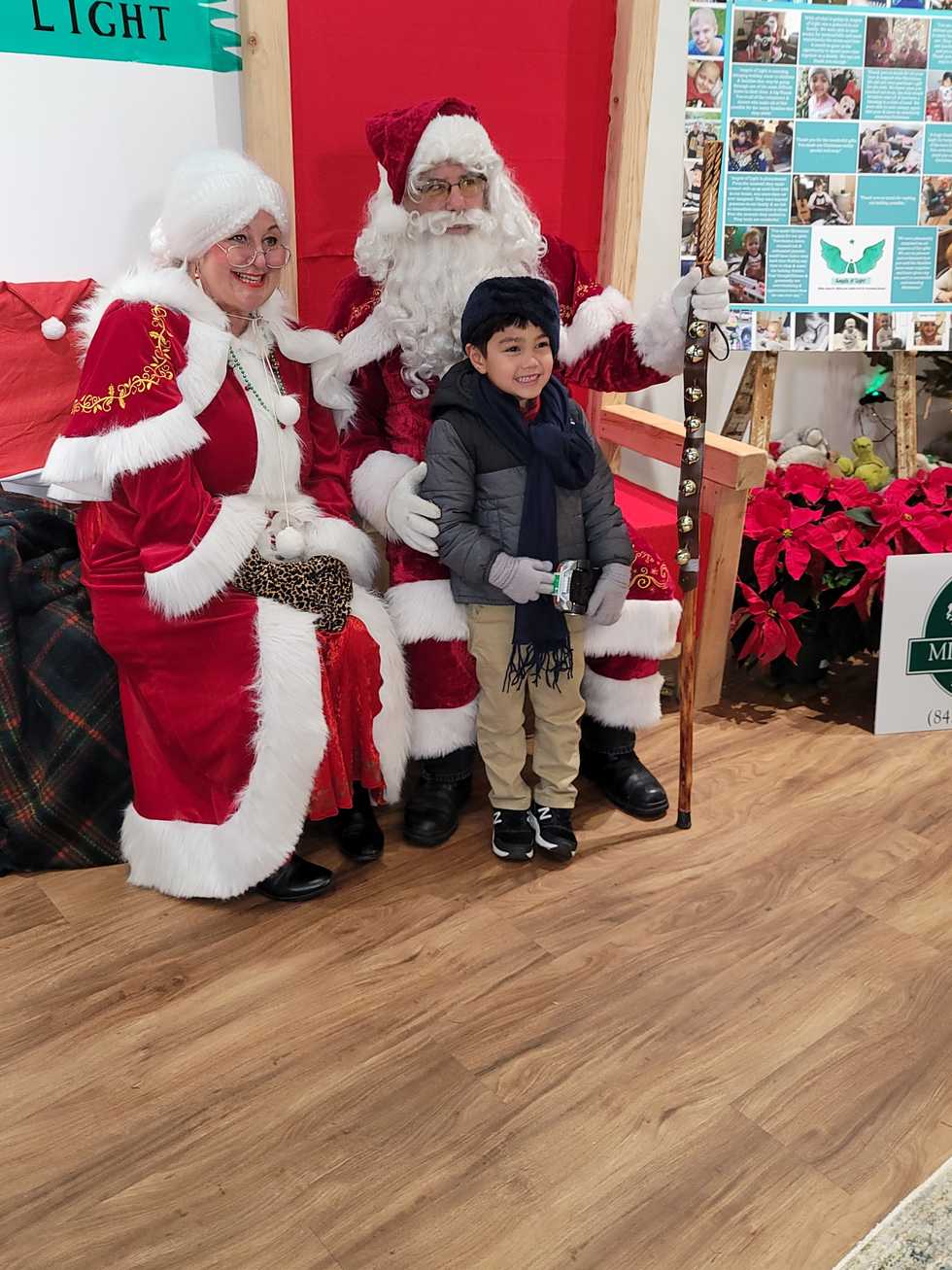 Mrs. Claus looks on as Ruben Caleb Mallari, 4, beams next to Santa. Ruben, from Verbank, is thoroughly enjoying his visit with the Clauses at Angels of Light on Front Street on Saturday, Dec. 3.