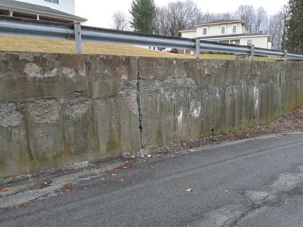 Shown here is a picture of the retaining wall at Harts Village Road and Front Street, which is in dire need of repair. Note the cracks and other fissures. A bid has been accepted for work to begin as soon as possible. Photo by Judith O'Hara Balfe