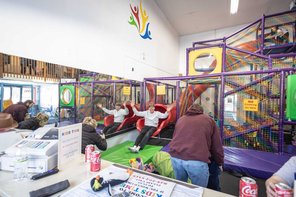 He waited more than a year for approvals before letting his imagination take over. Thompson spent months transforming the industrial space into an indoor world designed for children to jump, bounce, climb and slide.