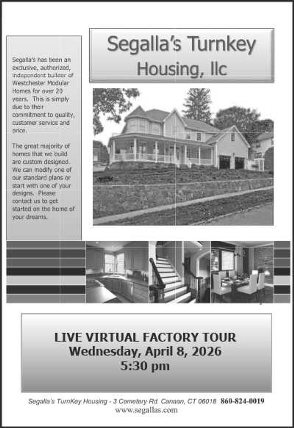 PUBLISHER’S NOTICE: Equal Housing Opportunity. All real estate advertised in this newspaper is subject to the Federal Fair Housing Act of 1966 revised March 12, 1989 which makes it illegal to advertise any preference, limitation, or discriminationbased on race, color religion, sex, handicap or familial status or national origin or intention to make any such preference, limitation or discrimination. All residential property advertised in the State of Connecticut General Statutes 46a-64c which prohibit the making, printing or publishing or causing to be made, printed or published any notice, statement or advertisement with respect to the sale or:rental of a dwelling that indicates any preference, limitation or discrimination based on race, creed, color, national origin, ancestry, sex, marital status, age, lawful source of income, familial status, physical or mental disability or an intention to make any such preference, limitation or discrimination.