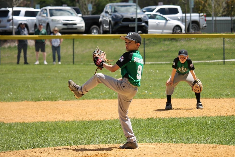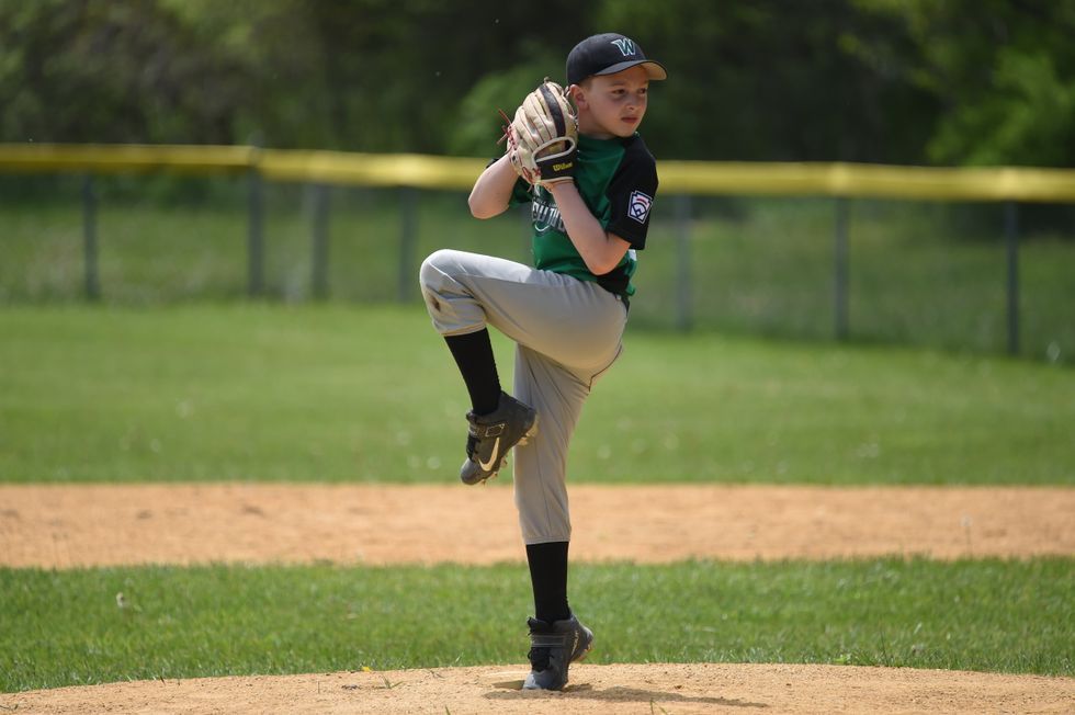 Cody Deister of Webutuck Little League Minors Savarese Sanitation at the top of his windup. Photo by John Coston