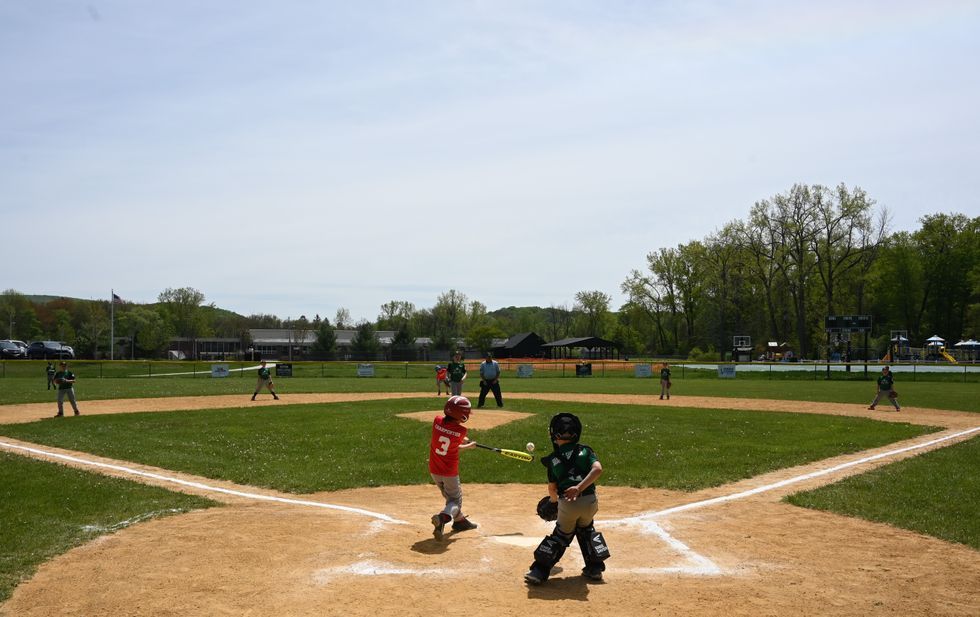 Ryder Charpentier of the Taconic Cardinals hits a single on Saturday, May 13, at Eddie Collins Park in a game against the Webutuck Minors team Savarese Septic Service. Photo by John Coston