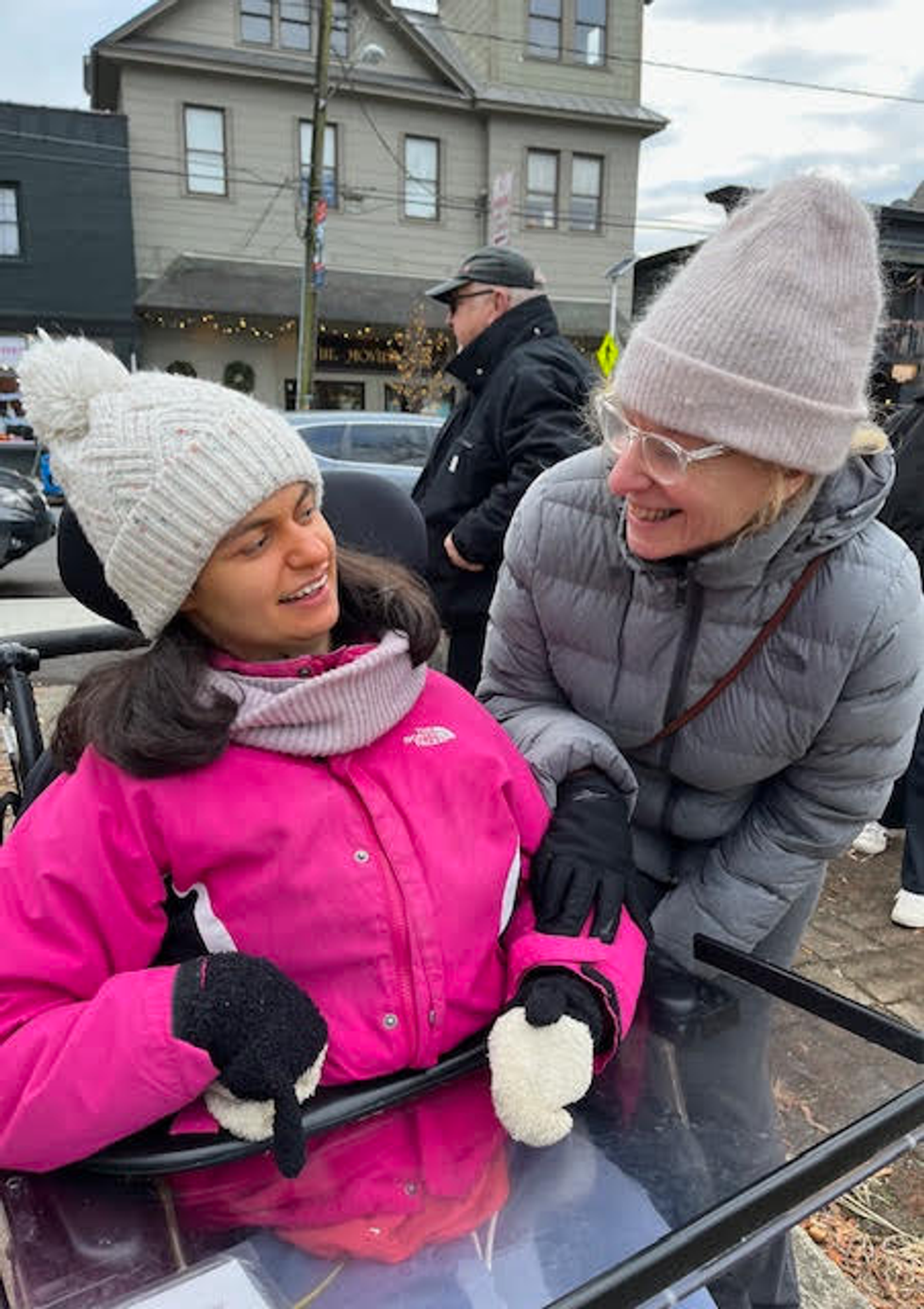 While the band played on, others, such as the Tong and Christiansen families, took a break from the music to opt for a ten-minute hayride around town, braving the day’s chilly temperatures while being greeted by friendly onlookers around the neighborhood. As the concert and various activities took place, shopkeepers could be seen about town stringing up colored lights, hanging garland, wreaths, and decorations.