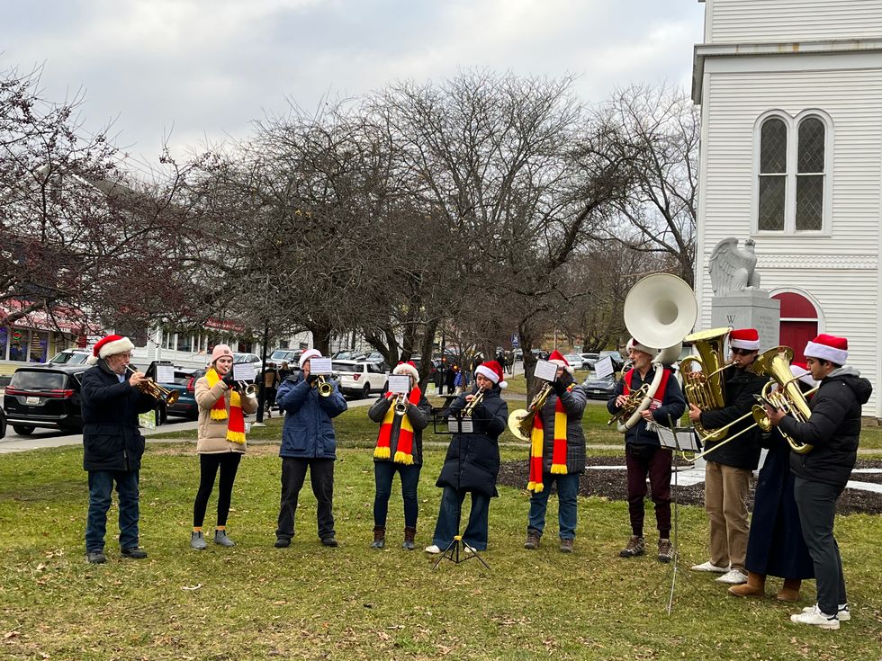 Echoing a sentiment felt by many that day, “Now it really feels like the holidays,” said Liz Dellureficio of Ancramdale, who was enjoying the brass band performance with her daughter Nika. Salisbury Brass Band provided the music, offering performances of traditional seasonal fare such as “Silent Night” and “O, Come All Ye Faithful.” Bandleader Perry Gardner, subbing for usual band director, Brian Viets, was quick to praise the talented musicians in his corps, adding that the band is always on the lookout for additional musicianship to swell their ranks. “Recruitment is an issue,” Gardner explained, saying the Salisbury Brass Band welcomes all interested parties, not just at the holidays, but year-round.
