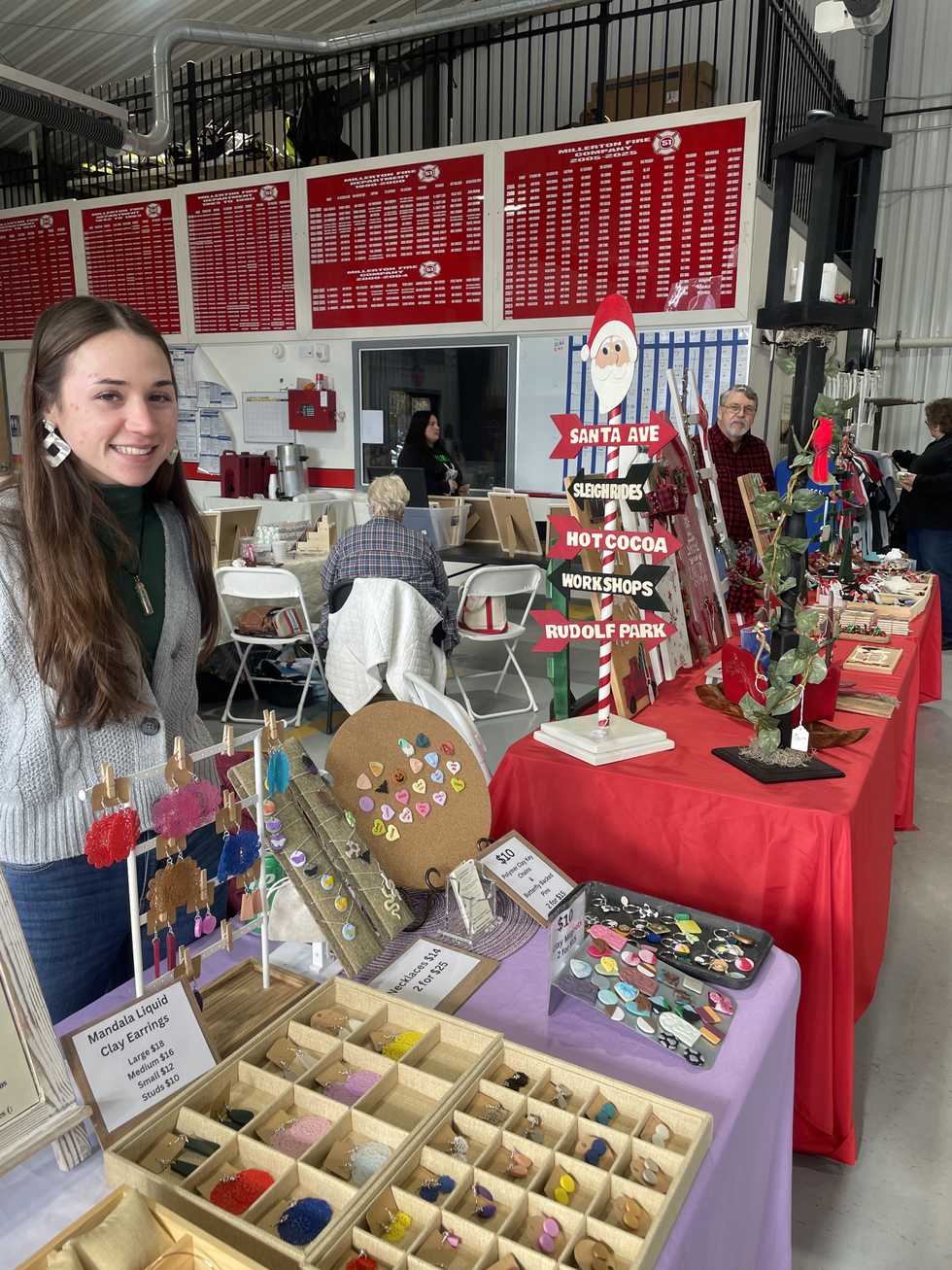 Jessica Anderson, left, of J.P. Anderson Creations, displayed her polymer clay jewelry at the craft fair at the North East fire station in Millerton on Saturday, Nov 11. She was one of 25 vendors at this second annual fundraising event sponsored by the Millerton Fire Company Support Team, co-chaired by Helen Brandt and Martha Schultz.
