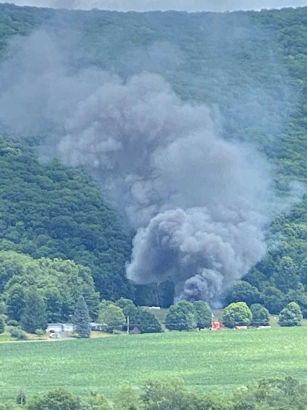 Officials from multiple area fire companies responded to a fire at 1310 Boston Corners Road in Millerton on Sunday afternoon, July 12; the smoke from the fire could be seen from miles away.