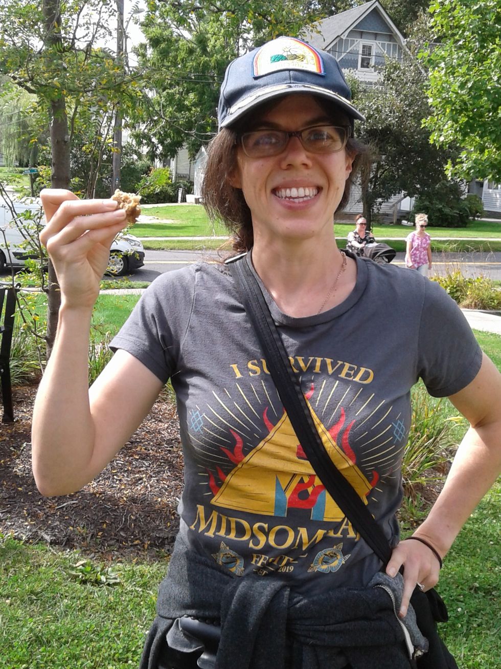 Visiting the village of Millerton from Cape Cod, Mass., Hannah Ewart savored the award-winning zucchini bar at the NorthEast-Millerton Library’s first Cookie Cook-Off. Photo by Kaitlin Lyle