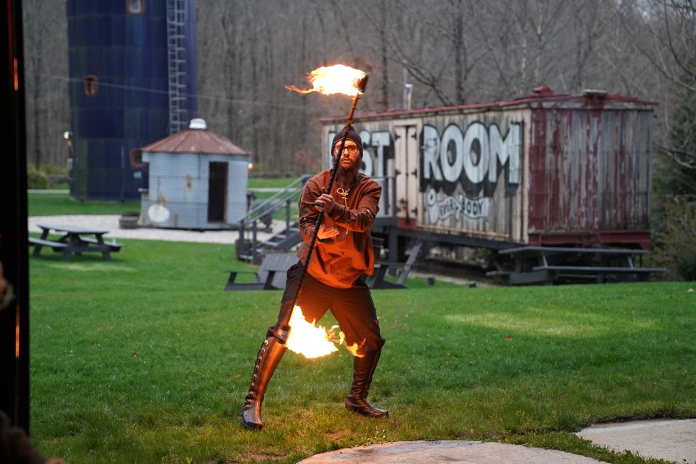 The Northwest Connecticut Arts Council (NWCT Arts) recently held Arts Connected, their first fundraiser, at the Spring Hill Vineyard in Washington, Connecticut. The evening celebration, a combination of Fellini movie, carnival, and Renaissance Fair, featured an aerialist from Matica Circus in Harwinton, and a flame and flow performer out in the courtyard under the stars. Momix, based in Washington Connecticut, under the artistic direction of founders Moses Pendleton and Cynthia Quinn, also performed. Two dancers wore Jeff Koons-style inflated red dog suits, and Momix dancer Jared Bogart wafted through the space wearing an immense, two-stories tall silk fan. Persian calligraphic painter Alibaba Awrang created a community work of art, while Ameen Mokdad, a violinist from Iraq, made music with Hartford’s Cuatro Puntos Ensemble. A young musician, Adelaide Punkin, performed an original song from the balcony of the vast space, while a giant puppet from Sova Dance and Puppet waltzed through the festivities. DJ Arvolyn Hill from Kent spun the tunes, an African drum circle set the rhythm, and there was abundant food and drink for the gathered crowd.