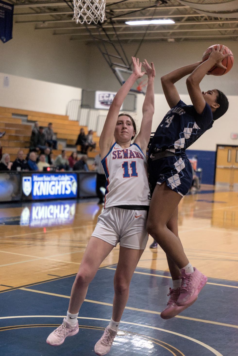 Naveah Rennie, no 34 of Pine Plains, was the Bombers' dominant scorer, racking up 20 points by the end of the matchup against S.S. Seward Institute during the Section IX Class C finals at Mount Saint Mary College on Wednesday, March 5.Photo by Nathan Miller
