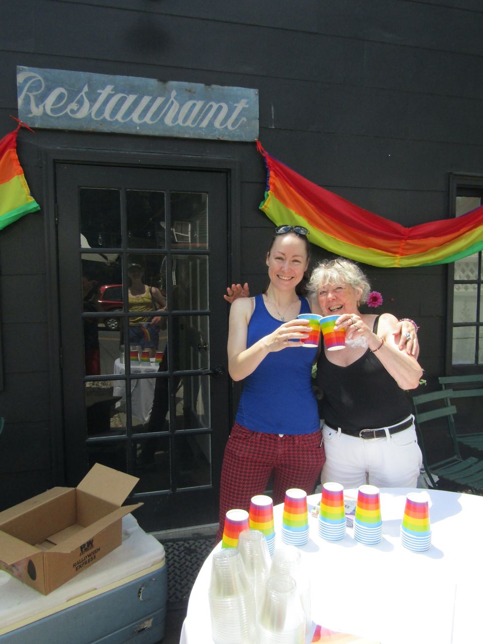 From left, Tracie Herrmann and Helen Fuss toasted the town of Pine Plains’ first-ever Pride Celebration in front of the restaurant Champetre. Photo by Kaitlin Lyle