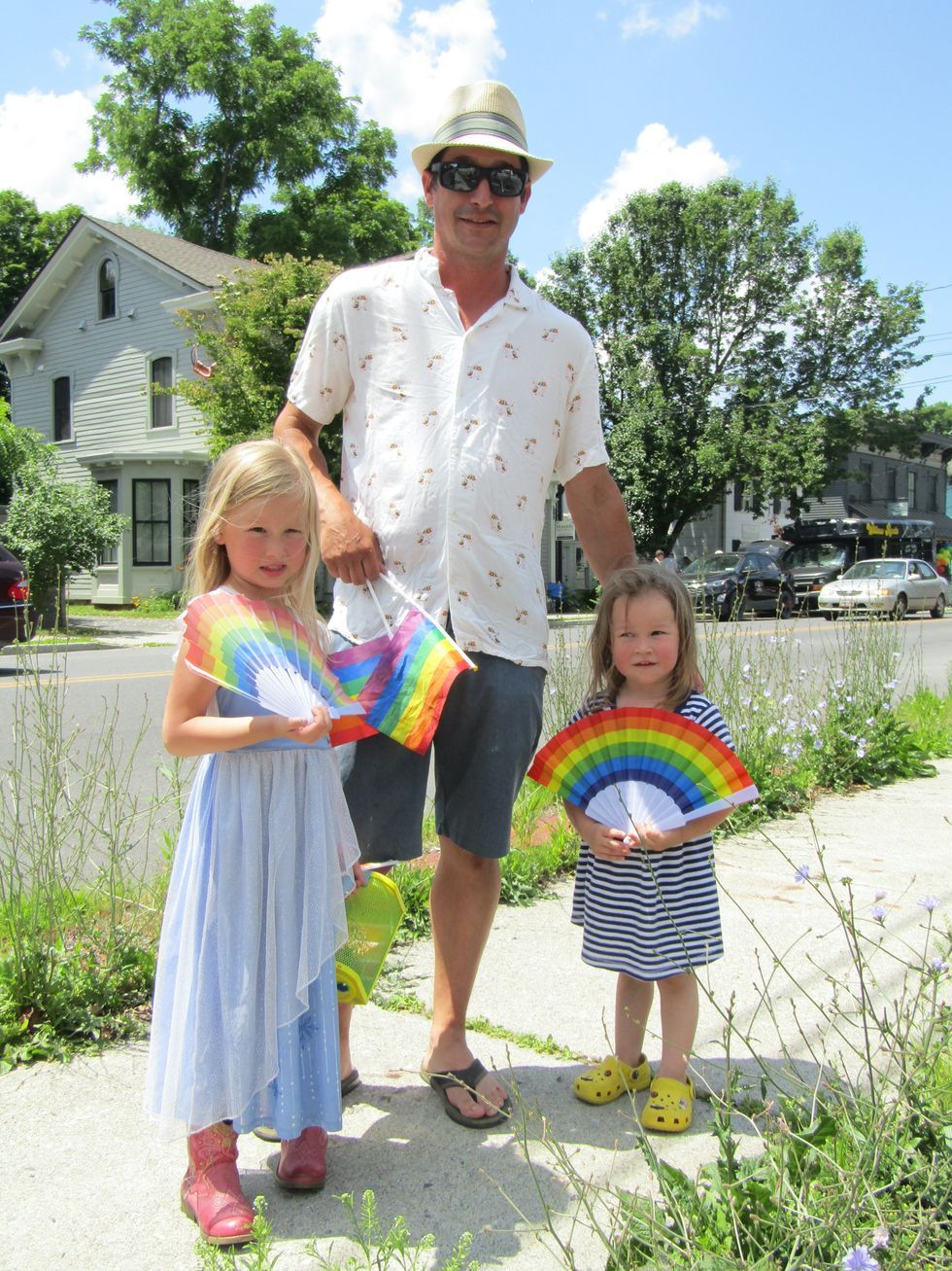 Pine Plains Councilman Matthew Zick strolled along the streets of his hometown during its first-ever Pride Celebration with his daughters, Sarah, left, and Elizabeth by his side. Photo by Kaitlin Lyle