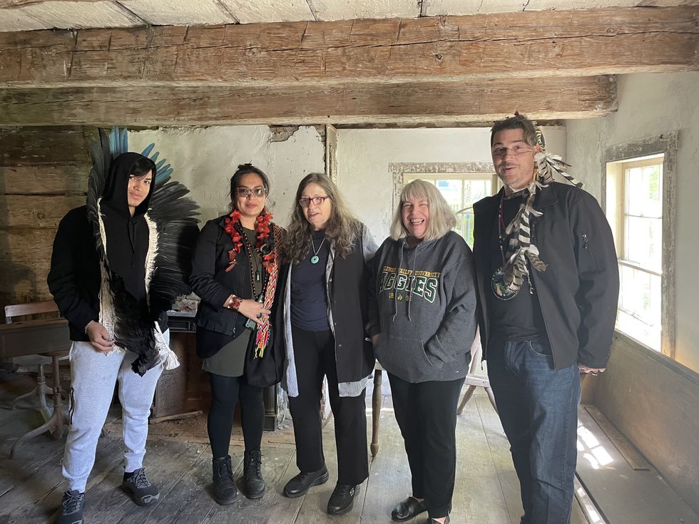 In one room of the 1776 (determined by dendrochronology assessment) Graham-Brush House, members of the Schaghticoke nation and Little Nine Partners Historical Society leaders enjoy a favorite word as coached by the chief. Left to right: Shukuvena Yawanawa, his mother Nawashahu Yawanawa-Bergin; LNPHS’ Valerie LaRobardier and Dyan Wapnick; and Sachem Hawk Storm. Photo by Deborah Maier