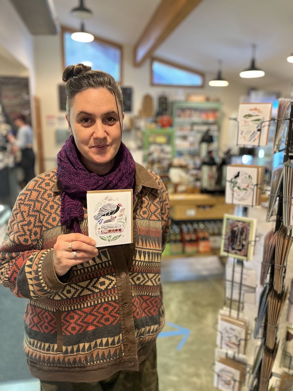 “Mayuko Fujino is a local artist from Japan who makes these incredible stencil and paper cut outs. She created our very own Random Harvest branded card featuring our store and the birds of the Hudson Valley and we just love it so much.”