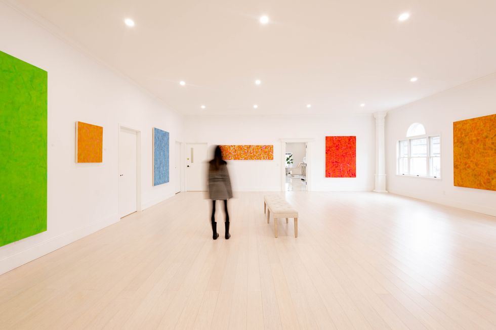 Al-Nemri, a former radiologist who taught for over a decade at Westchester Community College, is no stranger to layering, precision, or the quiet rigor of care. Her incredible menu of services — Botox, body contouring, pelvic floor therapies — are the cutting edge of the industry. Of Vavra, Al-Nemri said, “I fell in love with his work, and we just hit it off.” It’s a kind of kismet that seems to hover over the place. Pilates mat classes take place twice a week in the main gallery space and both Al-Nemri and Vavra have loved watching clients pause, eyes caught by a stripe of cerulean or a vibrating cluster of brushstrokes. “Something will catch their eye,” said Vavra. “They’re looking for something in it.”