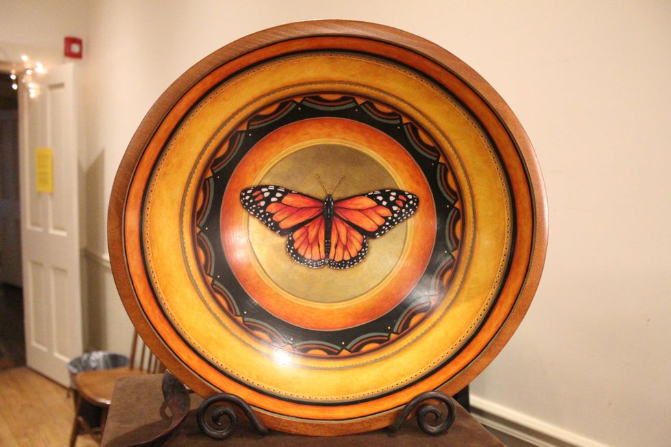 Shaari Horowitz, a veteran of the Salisbury Handmade scene, had her usual array of truly spectacular wooden bowls, decorated in such a way that actually using them as bowls seems unlikely, like putting the Mona Lisa on a couple of sawhorses as an impromptu picnic table.