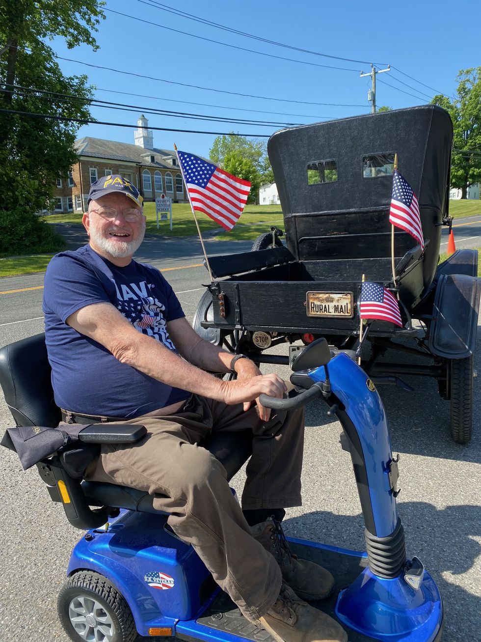 Under perfectly sunny skies and a refreshing breeze, the parade brought out polished emergency vehicles, and cars, both antique and classic, honor guard, veterans, a contingent from the Sharon Center School, decorated bicycles, a motorcycle, tractors, and more.  All were cheered by onlookers some of whom waved small flags with enthusiasm.