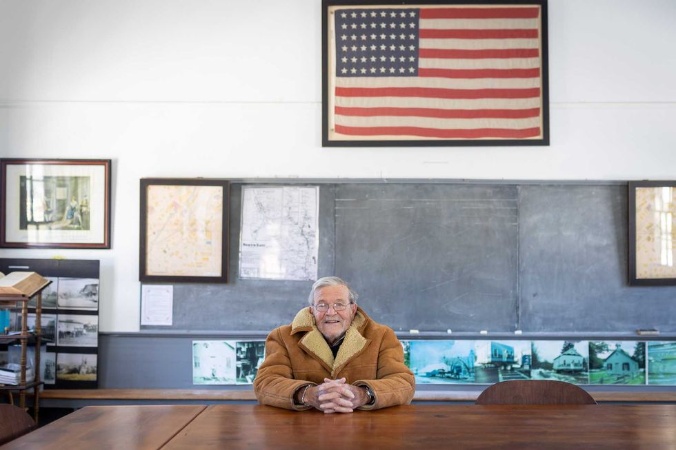 Ralph Fedele sits at a desk in the historic Irondale Schoolhouse, which he led the effort to relocate to downtown Millerton.