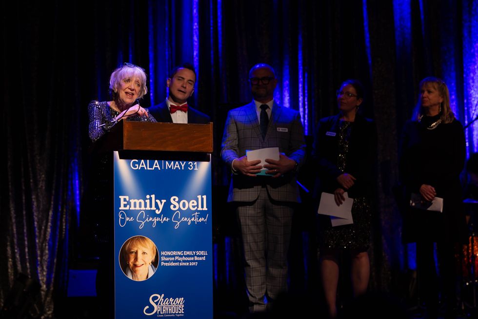 A company of 15 local youth and teens joined the Spotlight Gala at the Sharon Playhouse for ensemble numbers to honor Emily Soell, Board President. Right, Landry Champlin returned to the Sharon Playhouse to perform at the Spotlight Gala.