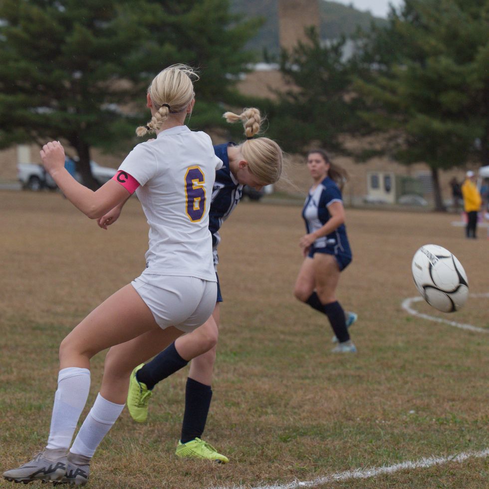 “Use your head,” is particularly good advice in soccer, and Pine Plains senior Madison Spann, no. 7, obviously takes the advice to heart to win the ball from Rhinebeck senior Maddy Santoro, no. 6, in a girls’ soccer match at Stissing Mountain High School Wednesday, Sept. 25. The game ended 6-1 Rhinebeck, marking Stissing Mountain's second loss to the team.Photo by Nathan Miller
