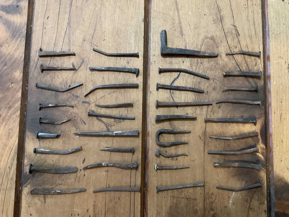 Marge Parkhurst with a collection of historic nails recovered from wall cavities during restoration work.
