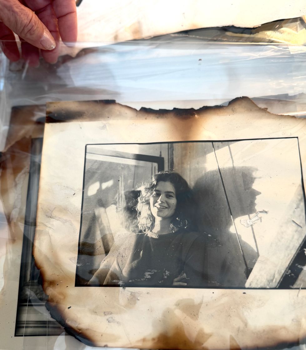 Day recalled the devastating house fire in which her family tragically lost their friend Maria Paz Reyes and their dog. Day survived by jumping from the second story. A lifetime of images, negatives and slides were lost or damaged. “To lose pictures is like losing friends. Everything was piled into metal file cabinets in my studio. All my negatives and slides were packed in tight. The fire started at the farthest point from there as possible. It was the only thing that wasn’t destroyed— every other single thing was gone. Nothing left. It was raining, so my friend Christopher covered everything with a tarp. The fabulous part of this story is how much help I had from my town, which gave me the empty firehouse to lay out everything to dry. Friends came from near and far to help. Some days I had ten volunteers, and it went on for a month, which gave me something to move forward with. It was so tragic and awful.”