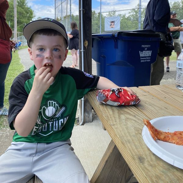 The Webutuck Little League program wrapped up its season with a celebration on Saturday, June 8 at Beekman Park in Amenia. Liam (7) of Millerton, a member of the T-ball team, is enjoying chips in the pavilion along with other players while awaiting the awarding of trophies.