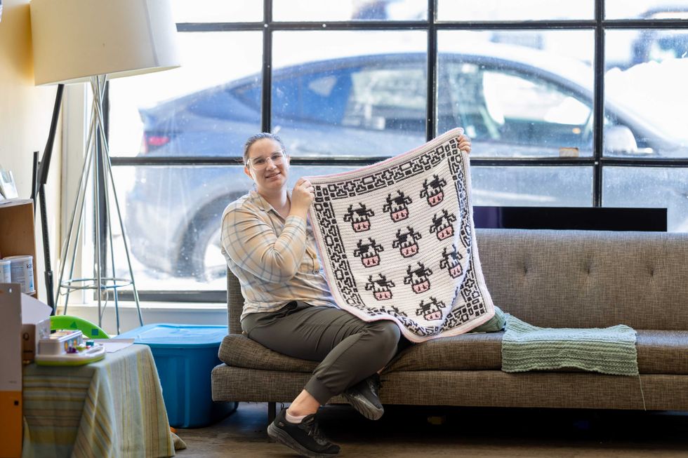 The idea took shape after Baldwin found herself racing to finish a crocheted baby blanket for her sister’s baby shower.